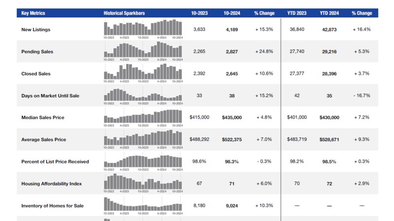 New listings, pending sales and closings are all up compared to last year and the experts are all predicting that with the election being over and the FED continuing to cuts rates we should continue to see increased activity movi...