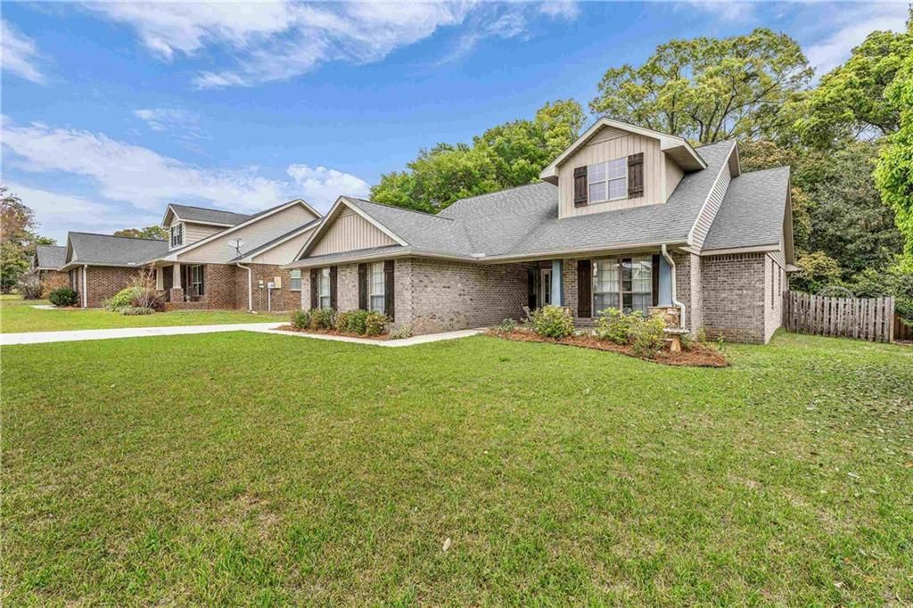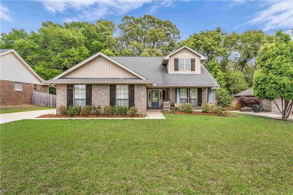 Great LOCATION and VALUE describe this charming 3-bedroom, 2-bath home with a versatile FLEX SPACE located in Huntington Woods subdivision in Fairhope. Huntington Woods is convenient to everything Fairhope has to offer: Fairhope Middle and High, sports fields, Downtown Fairhope, shopping and dining. This thoughtfully designed property offers a functional layout with NO CARPET throughout, making it easy to maintain and ideal for modern living. Enjoy relaxing on the covered front porch or entertaining on the back patio, with the added benefit of no home directly behind, providing extra privacy and a peaceful setting. Large Kitchen with breakfast bar, dining area, pantry and built in desk. The home also features a wide driveway and a side-entry garage, offering convenience and additional curb appeal. Buyer to verify all information during due diligence.