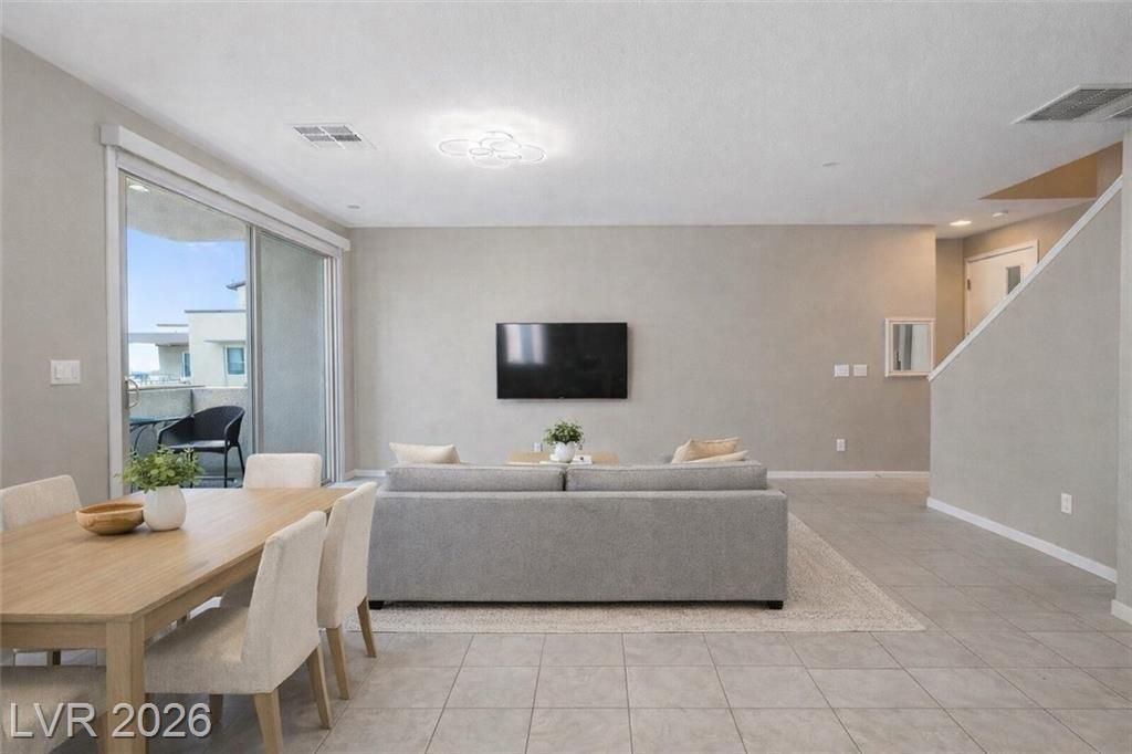 Location! Location! Location! This Luxury unit in the heart of Downtown Summerlin is a must see. Modern finishes w/upgraded cabinets in the kitchen with quartz countertops, SS appliances, and recessed lighting. High-end ceiling fans in both bedrooms and living room, and window coverings throughout. There are 2 balconies to enjoy. Upstairs has two bedrooms . Upgraded window coverings. Great garage and extra storage room. 3-5 minutes from Downtown Summerlin, Red Rock Casino, Aviators Ballpark, Golden Knights practice facility. Close to Red Rock Canyon scenic loop. Resort like Affinity Community 2 pools & spas, clubhouse, state of the art gym, exercise room, BBQ areas, firepits, and private event space. Sagemont Part next to with tennis courts, basketball courts, soccer fields, bike trails shaded picnic area.
