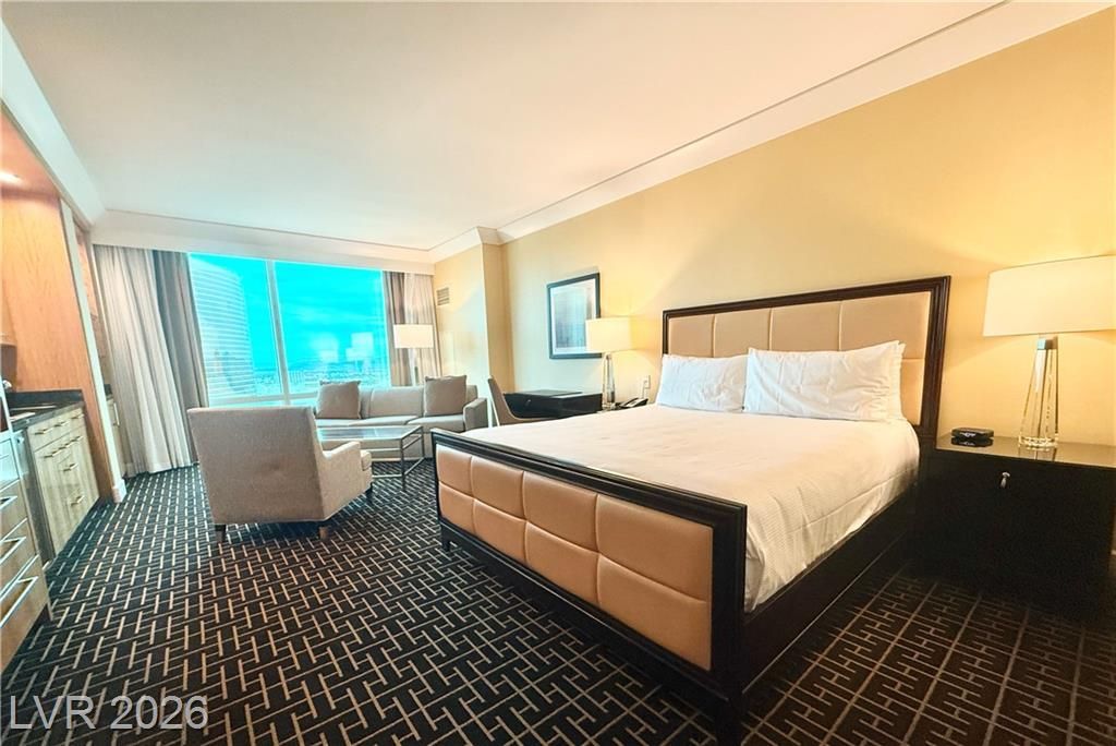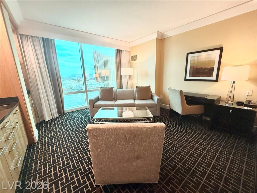 FULLY FURNISHED 23RD FLOOR STUDIO WITH BREATHTAKING VIEWS OF THE STRIP AND SMG SPHERE. MINI REFRIGE, MICROWAVE, ELECTRIC COOK TOP, QUEEN SIZE BED, LIVING ROOM WITH SOFA BED, CARPET AND MARBLE FLOORING, PRIMARY BATH WITH DOUBLE SINK, SEPARATE SHOWER AND JET TUB, PLASMA TV. VIEW OF THE ENCORE AND WYNN. TRUMP AMENITIES INCLUDE 24 HR SECURITY, CONCIERGE, IN SUITE DINING, RESTAURANT, POOL, FITNESS CENTER.