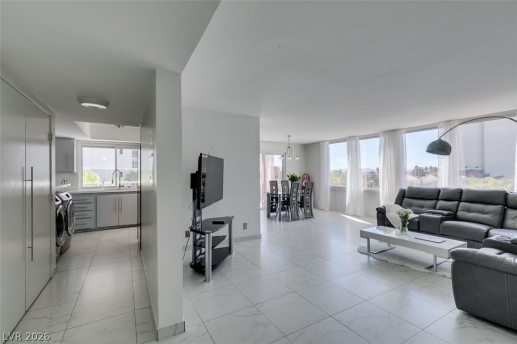 MOTIVATED SELLER! Unbeatable location and resort-style living! This beautifully maintained 2BR, 2BA 5th floor end unit offers 1,296 sq ft of open living space with an East-facing balcony perfect for enjoying the morning light and city views. Positioned directly across the street from the Formula 1 start/finish line and just steps from Top Golf, you'll be in the heart of the action. The unit features a 2-year-old A/C system for added comfort and efficiency. Enjoy an array of amenities including a heated pool, basketball, pickleball, and tennis courts, a well-equipped gym, clubhouse, BBQ area, and secure underground gated parking with two assigned spaces. Whether you're looking for a full-time residence or a Las Vegas getaway, this unit offers the perfect blend of comfort, convenience, and entertainment.