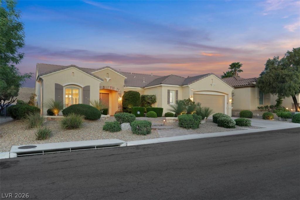Elevated living meets refined comfort in this desirable Saratoga model in Sun City Anthem, offering partial city and mountain views, 2 bedrooms, 2.5 baths, and a den. Thoughtfully designed with tile flooring, high ceilings, and plantation shutters, the home feels bright, open, and effortlessly inviting. The oversized kitchen is a true focal point featuring granite countertops, a large island, and stainless steel appliances, ideal for both everyday living and entertaining. The spacious primary suite offers plush carpeting and direct access to the backyard, creating a seamless indoor-outdoor connection. The primary bath showcases a large soaking tub, perfect for unwinding, along with a well-designed, functional layout. Step outside to a covered patio where you can relax or entertain while enjoying the peaceful elevated setting with views. Located near Sun City Anthem's premier amenities, this home offers the perfect blend of lifestyle, comfort, and convenience.