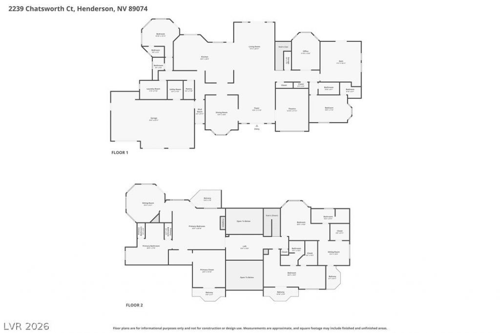 Exquisite remodeled estate in guard-gated Fountains, on a rare 0.47-acre corner lot. This modern masterpiece boasts a fully open, contemporary layout flooded with natural light, 5 en-suite bedrooms, 5 luxurious baths, private theater, dedicated gym, and executive office. The chef's gourmet kitchen dazzles with dual Sub-Zero refrigerators, dual islands, quartz counters, dual dishwashers, Miele espresso station, walk-in pantry, wine cellar, and stunning display?perfect for effortless entertaining. Resort-style backyard oasis: oversized pool with new equipment, full outdoor kitchen/bar with built-in BBQ, lighted basketball court, cozy fire pit, multiple covered patios, outdoor shower, lush mature landscaping, and accent lighting for ultimate privacy and serenity. Opulent circular driveway, 3-car epoxy garage with RV potential, graceful archways, formal dining, and 4 balconies/verandas. Prime location near premier golf, shopping, and Vegas Strip. Turnkey luxury retreat?live the dream.