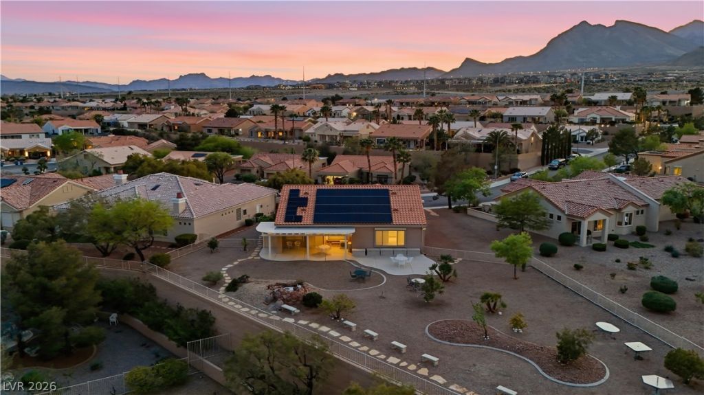 Modified Sherwood Model Overlooking the entire City! Elevated .38 acre lot, City, Strip and Mountain Views! Premier 55+ age qualified Sun City Summerlin Golf Community! Open great room perfect for comfortable everyday living/entertaining, formal entry, island kitchen w/refinished cabinets and granite counters, pantry, breakfast bar & nook. 2 bedroom and double door den/office. 3rd bedroom/casita off garage for a total possible 4 bedrooms! New designer interior paint! Manmade wood flooring and porcelain tile through! $100k+ owned solar with six battery backup system. $75K+ automatic remote Rolladen rolling shutters and Boss security screens through. Tankless water heater! Redundant ductless HVAC systems for extra confront. Covered patio with city and mountain, strip views! Ceiling fans, Air conditioned/heated 2-car + golf cart garage with 3rd garage door! New HVAC systems! Community amenities: pools, spas, tennis, pickleball, golf, fitness center, restaurants, and vibrant social life!