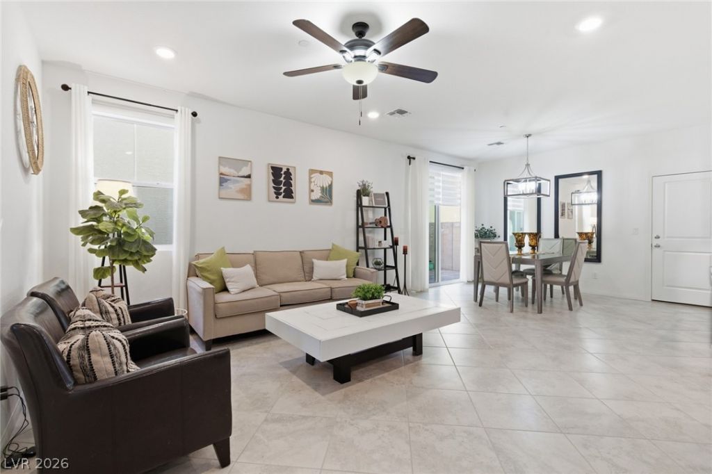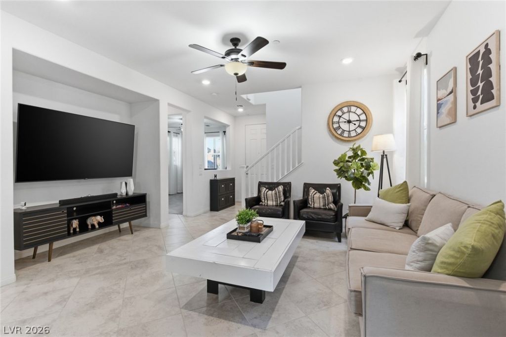 Charming Two-Story in Inspirada with Paid-Off Solar! Located in the highly desirable Inspirada in Henderson, this beautifully maintained home offers bright, open living spaces with oversized tile flooring, neutral tones, and abundant natural light. The functional layout includes a versatile downstairs room perfect for a home office, flex space, or guest area, while remaining three bedrooms are upstairs. Enjoy charming curb appeal with a covered front porch and classic Mediterranean-style exterior. Fully paid-off solar included, and brand new luxury rolling blinds throughout providing long-term energy savings and added value. A fantastic opportunity to own in one of Henderson's most sought-after communities with parks, trails, and resort-style amenities.