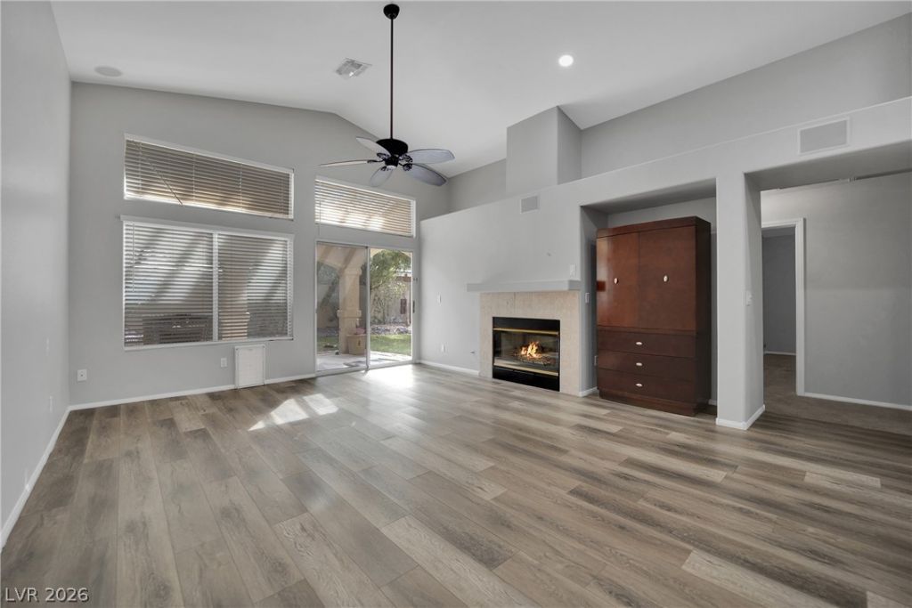 Located on the outskirts of Green Valley Ranch, this freshly painted single-story home features 4 bedrooms, a 3-car garage, PAID Solar, and a new AC unit! Enjoy nearby parks and amenities without HOA fees. Open, functional floor plan with spacious living areas and abundant natural light. Kitchen opens to the main living space, ideal for everyday living and entertaining. Primary suite is privately separated from the secondary bedrooms, creating a true retreat. Private yard with mature trees & plants. **MOTIVATED SELLERS**. Seller will consider buying a new fridge & gas stove or giving credit to the Buyer.