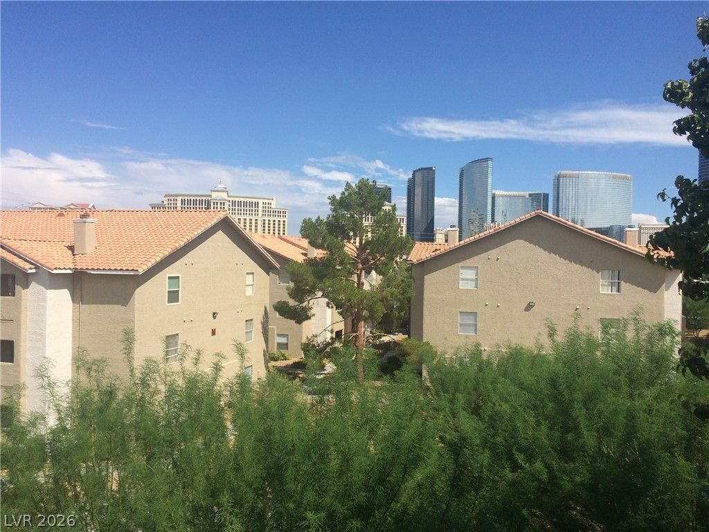 Views of the Las Vegas Strip Right from the Top Floor Balcony Over Looking the Pools! This Guard Gated Community is Located Minutes From the Strip. Freshly Painted. Hardwood Flooring Throughout Living Area and Bedrooms. Granite and Tile Flooring in the Kitchen and Bath. Ceiling Fan, and Walk In Closets. Community Boasts Multiple Pools, Clubhouse, and Gym.
