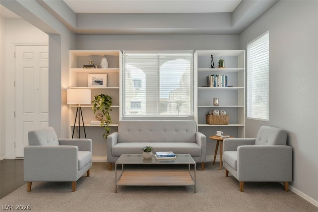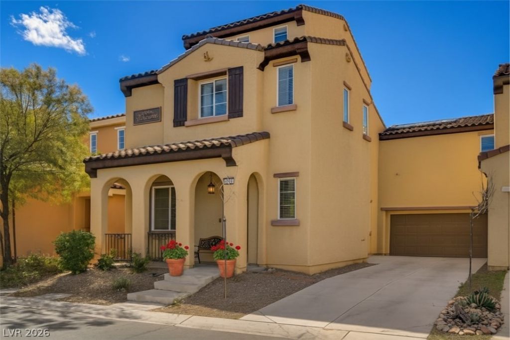 Located in a gated Providence community,this home offers you city,strip & mountain views from the 3rd floor loft or bedroom #4 & 5.The primary bedroom balcony has peek a boo mountain views.The open layout is perfect for entertaining & enjoying your family.Sliding glass doors off the kitchen & family room bring the outside in.Enjoy a low-maintenance backyard w/synthetic turf & over $20,000 spent on the raised patio area.Solar is a PPA @ $178 a month for energy efficiency.NV power bill only $59.The kitchen offers an island/breakfast bar, w/ seating for 3-5.The nook has space for your kitchen/dining table.A butlers pantry w/cabinets & a pantry open to the living/dining/office.The private primary retreat features a balcony w/mountain views overlooks the backyard.The generous sized walk-in closet has custom built-ins.A beautiful barn door opens to the primary bathroom.The secondary bedrooms share a Jack-&-Jill bath.The laundry room w/extra storage is on the 2nd floor for added convenience.