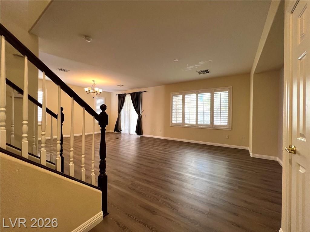Spacious 2 story home with 1,700 sq. ft., 3 bedrooms, located in gated community in Southwest area near Rainbow & Hacienda, open floor plan, tile and laminate flooring - no carpet, shutters throughout, good size bedrooms, primary bedroom with walk-in closet and private bathroom with dual sinks and separate shower & tub, backyard with covered patio & desert landscaping - a nice place for you and/or family to enjoy the Vegas outdoor living. The balcony is not available for use. Photos were taken prior to the previous tenant's occupancy.