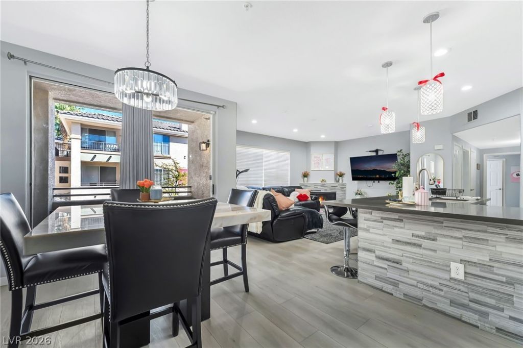 Beautifully refreshed 2-bed, 2-bath residence located in a well-maintained gated community. This inviting home features an upgraded kitchen with modern finishes, along with fully updated bathrooms. The living room includes a fireplace and opens to a private balcony. There is in unit laundry for your convenience, and the primary suite offers a walk-in closet and an ensuite bath. Community amenities include 3 pools, tennis court and assigned covered parking. Existing appliances are included, and furnishings can be made included. A wonderful opportunity in a convenient Las Vegas location.