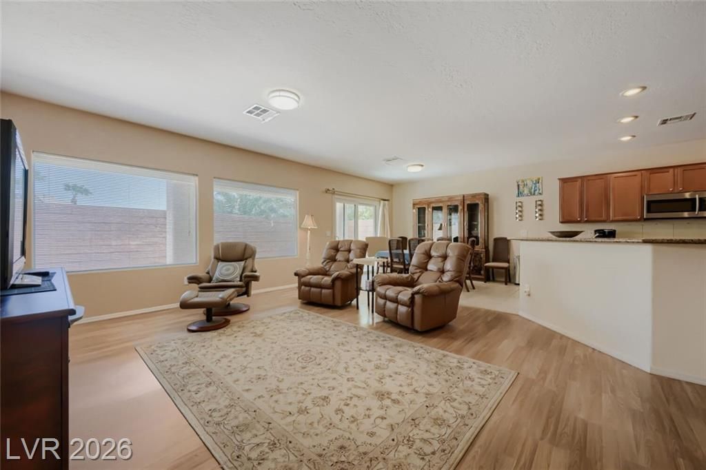 Laurel model in desirable Sun City Aliante featuring a rare separate casita with its own private entry?perfect for next-gen living, guests, or a roommate setup. This thoughtfully designed home offers tile and laminate flooring throughout for easy maintenance and a clean, modern feel. Enjoy added peace of mind with Rolladen shutters, providing both security and privacy. The home comes fully furnished, making it an ideal turnkey opportunity for snowbirds or buyers relocating from out of state who want to experience the area with ease. The flexible layout allows for comfortable multi-generational living while still maintaining personal space. Located in a premier 55+ community with exceptional amenities including golf, clubhouse, fitness center, and social activities. Move-in ready and perfectly suited for those seeking convenience, comfort, and lifestyle in Sun City Aliante.