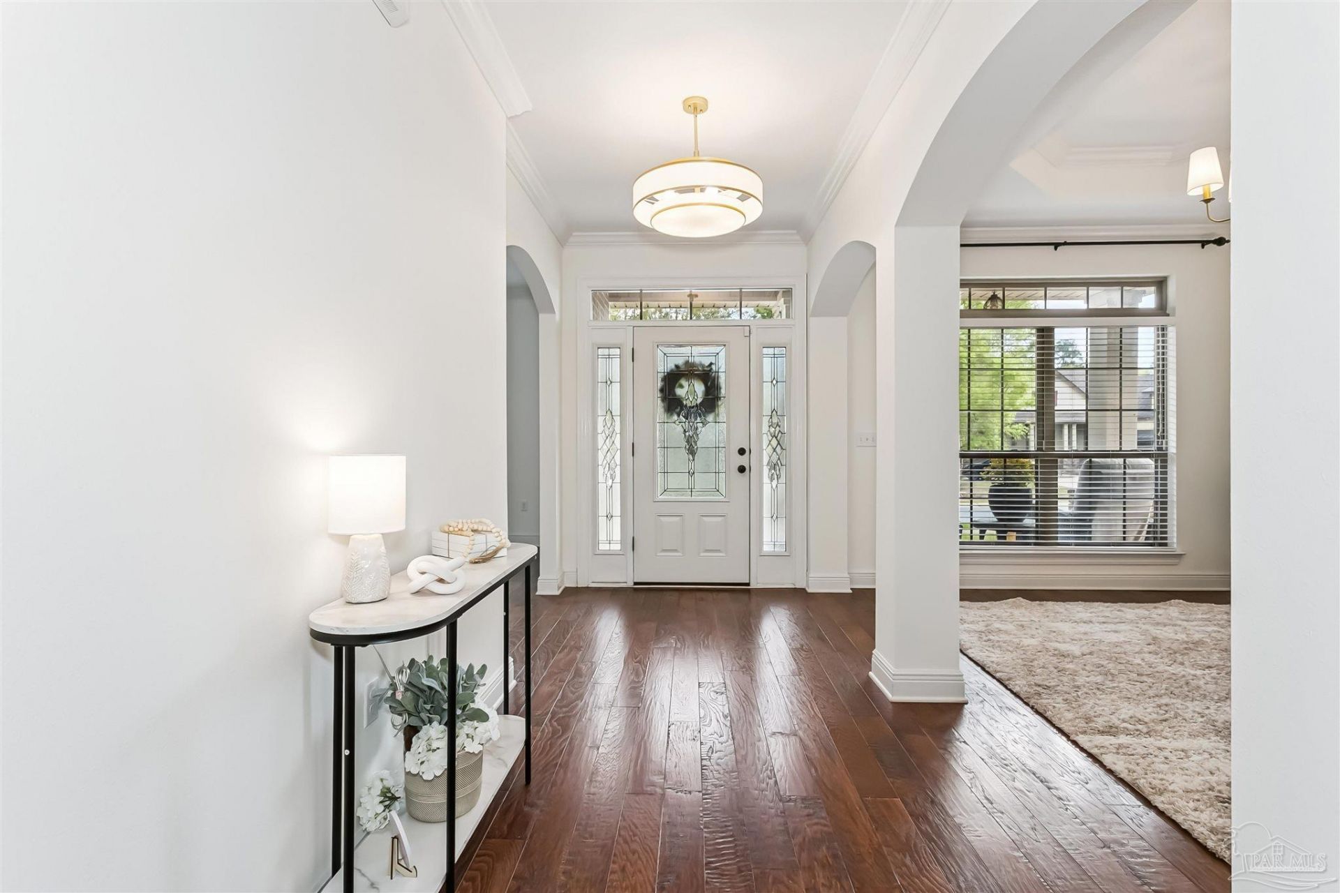 Beautiful premier one-story, POOL home that includes a brand NEW GOLF CART!! Located within the sought-after gated community of Nature Trail this exquisite property is positioned against a greenbelt for optimal backyard privacy and showcases superior craftsmanship throughout, including hand-scraped hardwood flooring, custom cabinetry, and granite surfaces. The spacious and well-planned layout is designed for both comfort and luxury, featuring a 3 way split floorplan that includes a gourmet kitchen with a gas range, a dedicated office, and a primary suite with elevated tray ceilings. For added peace of mind and versatility, the home is equipped with a newer whole-house generator and includes additional space suitable for an in-law suite. The interior transitions seamlessly to an impressive outdoor living area, which features a stunning swimming pool and hot tub surrounded by pavers. The backyard also offers a covered lanai, a fully equipped outdoor kitchen, and ample extra yard space for recreation. Residents of Nature Trail enjoy exceptional community amenities, including five miles of hiking trails, tennis and pickleball courts, a fitness center, and a community pool. The location is also highly convenient, situated just 2.5 miles from the interstate and less than 30 minutes from Pensacola's award-winning beaches and downtown area.