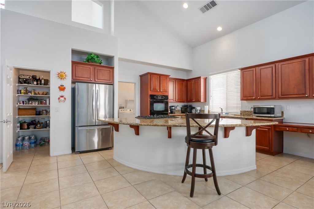 This fabulous Summerlin home has it all! POOL/SPA/PRIMARY SUITE DOWNSTAIRS/4 BEDROOMS WITH ONE MORE DOWNSTAIRS AND THE 2 UPSTAIRS WITH THEIR OWN JACK AND JILL BATH! This open concept floor plan offers flexibility for a great number of lifestyles. It is super clean and has vaulted ceilings and is light and bright. The 3-car garage has direct access into the house with lots of storage throughout the home. The gorgeous kitchen has oversized island with seating for 7 easily, there is also a wet bar for additional entertaining opportunities. The back yard offers a stunning pool and spa with a patio for outdoor living as well. With a fabulous location off Charleston close to Red Rock Casino and downtown Summerlin this is the perfect house. Laundry room is downstairs. This is a home you would be proud to call your own.